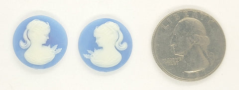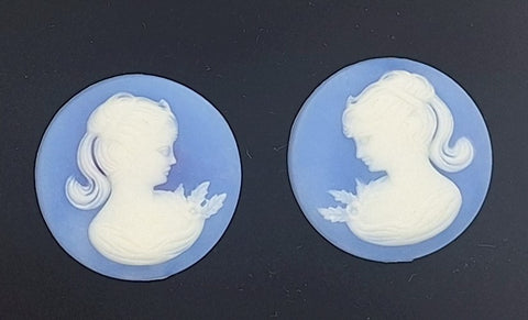 18mm Matched Pair of Blue and White Ponytail Girl Resin Cameo Cabochon