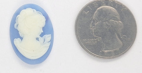 25x18mm Blue and White Woman with Short Hair Resin Cameo Cabochon J191