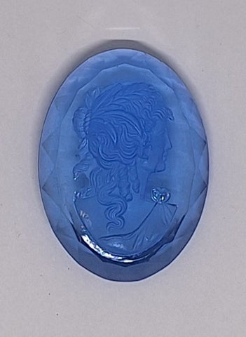 40x30mm Vintage German Faceted Blue Glass Woman Cameo Cabochon J108