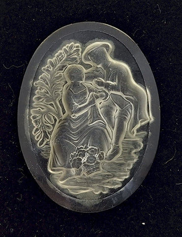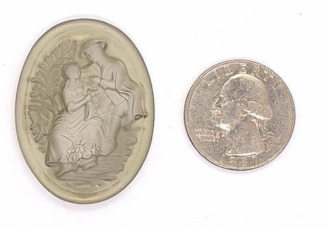 This is an Intaglio. The design itself is cut into the glass from the back. This is a glass piece. Something to consider with these clear cameos is the possibility of painting the profile from the back,, no reason you can't colorize the cut in area with a bit of care. Flat back should fit all settings. A vintage piece no longer being produced. Made in Germany,
