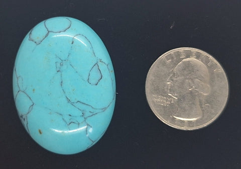 You are purchasing the stone in the photo. This is an imitation Turquoise. Feels like a stone, not sure what the stone is, often this is dyed howlite. I see fire mountain gem calls the same stone turquoise (assembled). The stones are very consistent in terms of color. The little crack lines will be unique to each stone but color and also size seem to almost exact between each of them.  I tried finding real 40x30mm turquoise not an easy task. Looks like maybe real ones are 10 times the price.