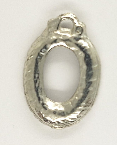 This is a cast setting with a silver finish on it. Simple open back design. Appears to mimic a lace edge bezel setting.