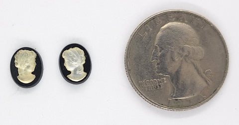 These are vintage west German Glass. Sold as a pair. 10x8mm Black and pearl matching cameo pairs
