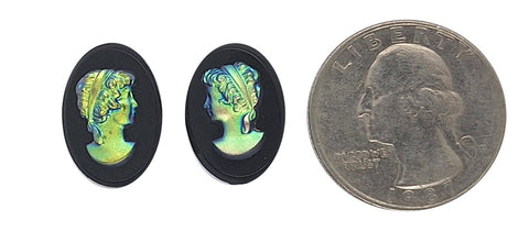 Sold as matched pairs. They have an Aurora Borealis look to them. Colors change with movement. These are glass. A vintage piece no longer being produced. Made in Germany,