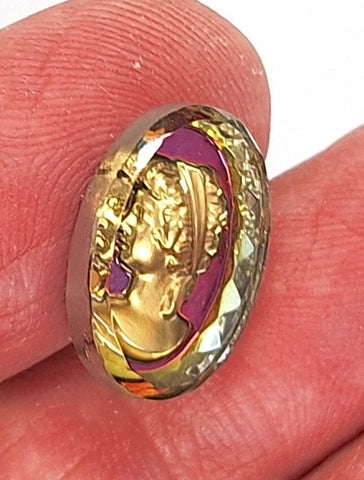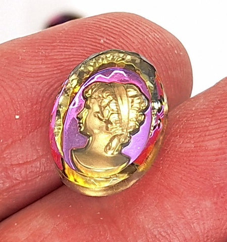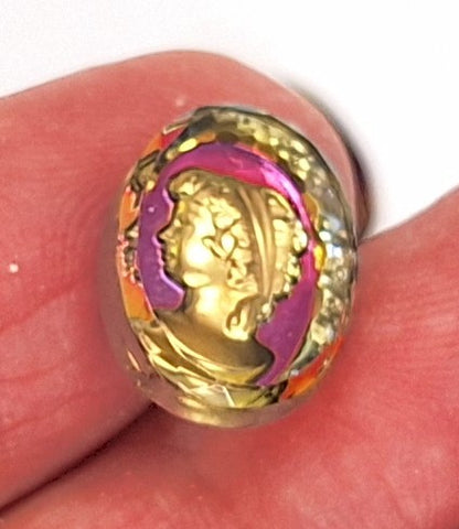 18x13mm Matched Pair Vintage Iridescent German Woman Glass Flat Back Cameo J136